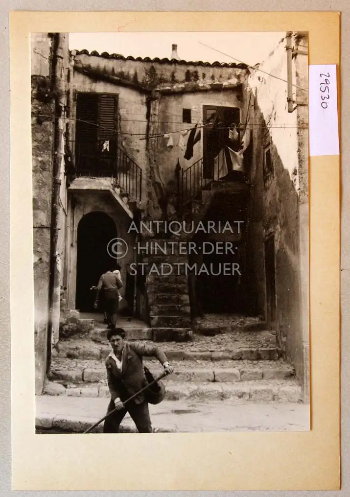 Schwarzweiß-Fotografie, Handabzug auf seidenmatten, texturierten Fotopapier. Entlang einer Kante auf Karton geklebt. Trägerkarton gebräunt, kleine Beschädigungen hinten. (Foto Walter Petzold, 1957-3-3a)