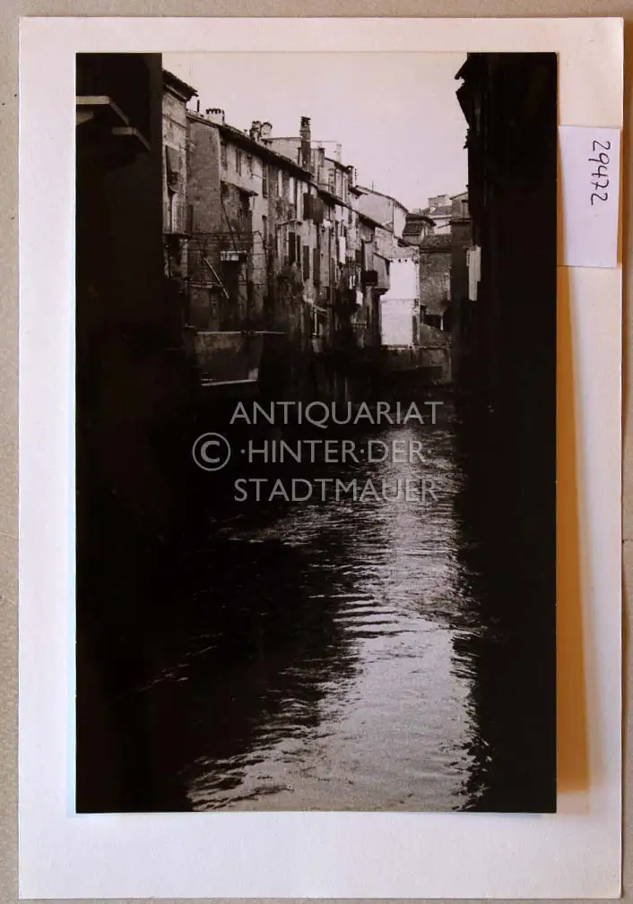 Schwarzweiß-Fotografie, Handabzug auf Hochglanz-Fotopapier. Entlang einer Kante auf Karton geklebt; kleine Beschädigungen der Rückseite des Trägerkartons. Im Streiflicht Unregelmäßigkeiten in der Oberfläche, in der Draufsicht nicht erkennbar. (Foto Walter Petzold, 1963-66-3)