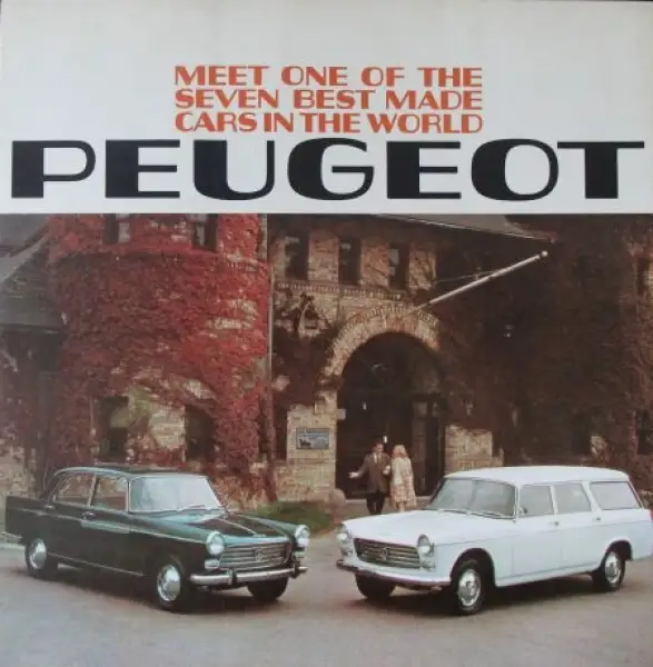 Peugeot 404 Modellprogramm 1968 "Meet on of the seven best" Automobilprospekt (0526)