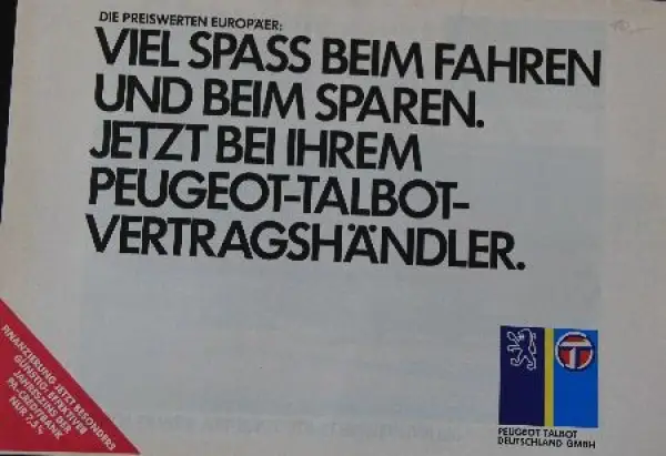 Peugeot Modellprogramm 1983 Automobilprospekt (7243)