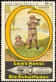 Leos Hansi Buchstabenserie "Die Schulfeder" Bild 3, Größe/Zustand: 7x5 , guter Zustand, Original alte Reklamemarke die seinerzeit für die Werbung benutzt wurde