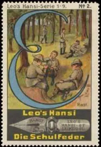 Leos Hansi Buchstabenserie "Die Schulfeder" Bild 2, Größe/Zustand: 7x5 , guter Zustand, Original alte Reklamemarke die seinerzeit für die Werbung benutzt wurde