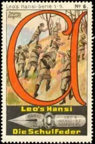 Leos Hansi Buchstabenserie "Die Schulfeder" Bild 6, Größe/Zustand: 7x5 , guter Zustand, Original alte Reklamemarke die seinerzeit für die Werbung benutzt wurde