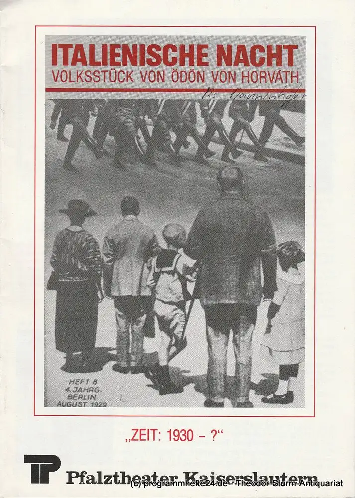 Volksstück von Ödön von Horvath. Regie: Petera Dannenhöfer. Bühnenbild: Melchior Stähli. Kostüme: Uta Loher. Mitwirkende: Walther K. Stein, Ingulf Michel, Jürgen Lawrenz, Wolfgang Miksch, u.a. - Theaterprogramm, Opernprogramm, Ballettprogramm, Musicalprogramm, Konzertprogramm, Theatermemorabilia, Programmhefte Sammlung, deutsche Theatergeschichte.