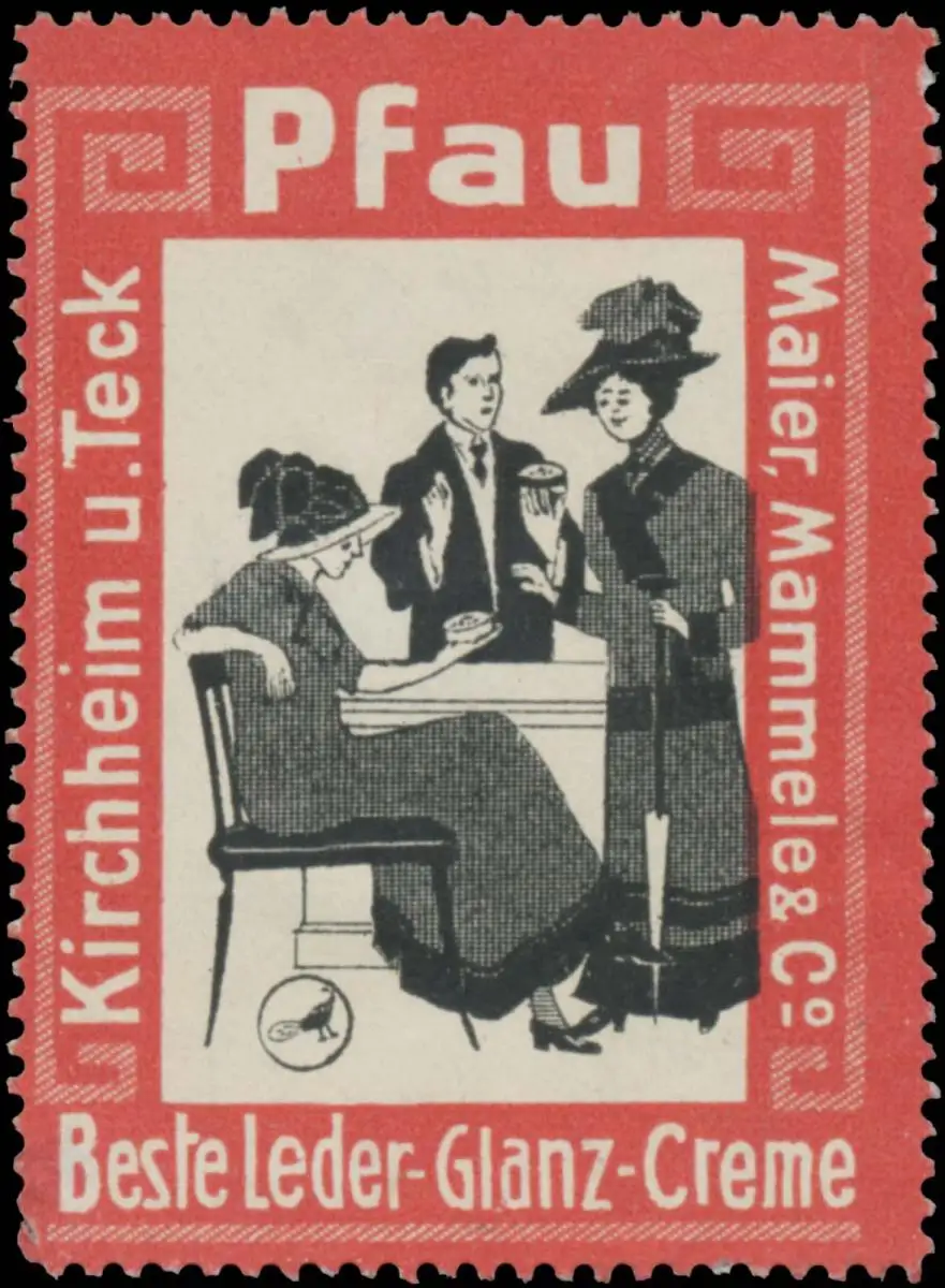 Pfau beste Leder-Glanz-Creme, Größe/Zustand: 6x4 , guter Zustand, Original alte Reklamemarke die seinerzeit für die Werbung benutzt wurde