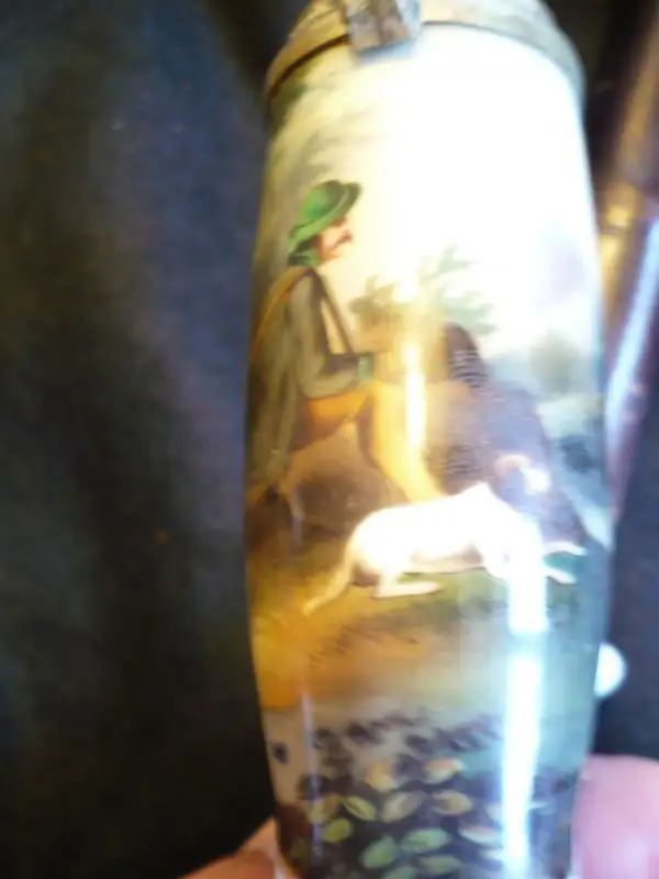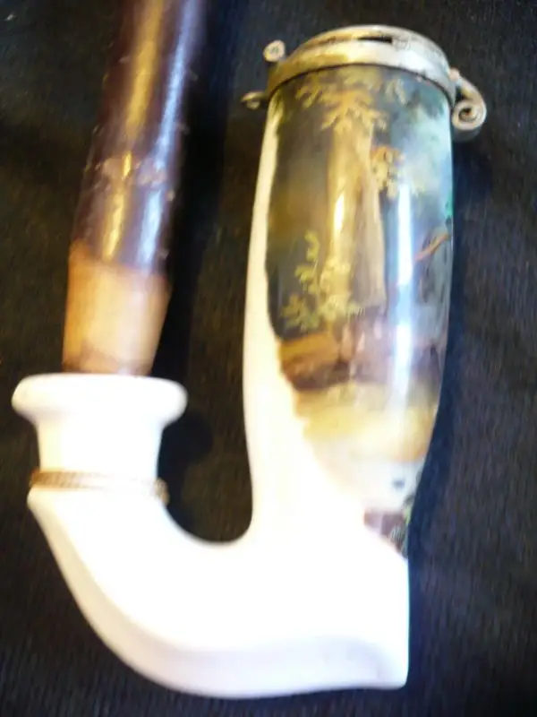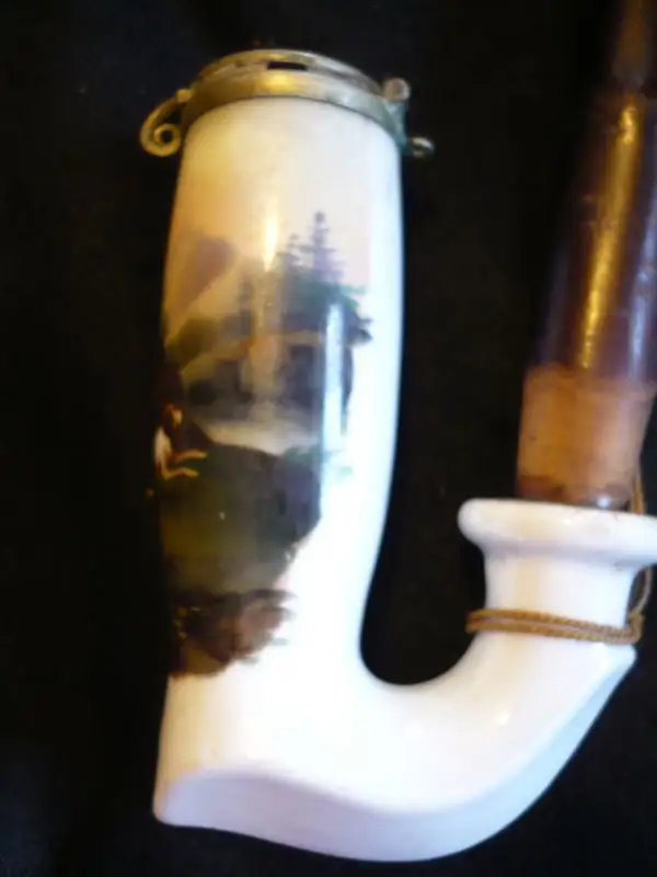 Pfeife mit Porcellankopf mit Metalldeckel