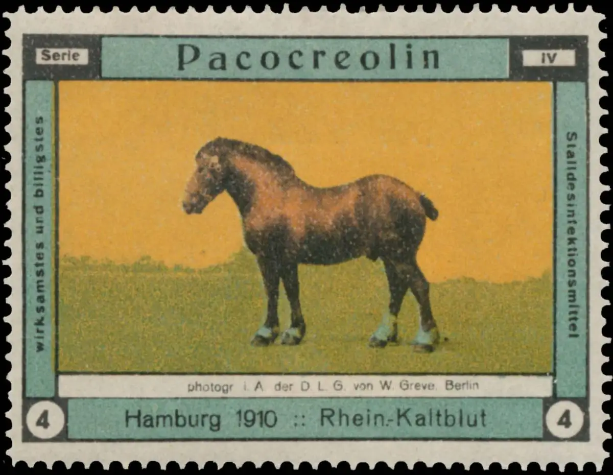 Pacocerolin, Serie: IV, Bild 4, Hamburg, 1910, fotografiert im Auftrag der DLG von W. Geve, Berlin, Größe/Zustand: 4x6 , guter Zustand, Original alte Reklamemarke die seinerzeit für die Werbung benutzt wurde