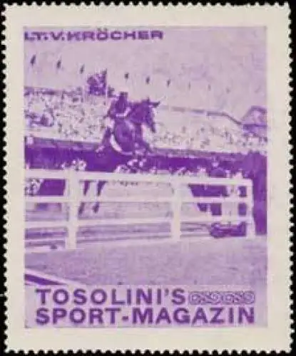 Springreiter Rabod von Kröcher, Tosolinis Sport-Magazin Serie, Größe/Zustand: 6x5 , leicht beschädigt, Original alte Reklamemarke die seinerzeit für die Werbung benutzt wurde