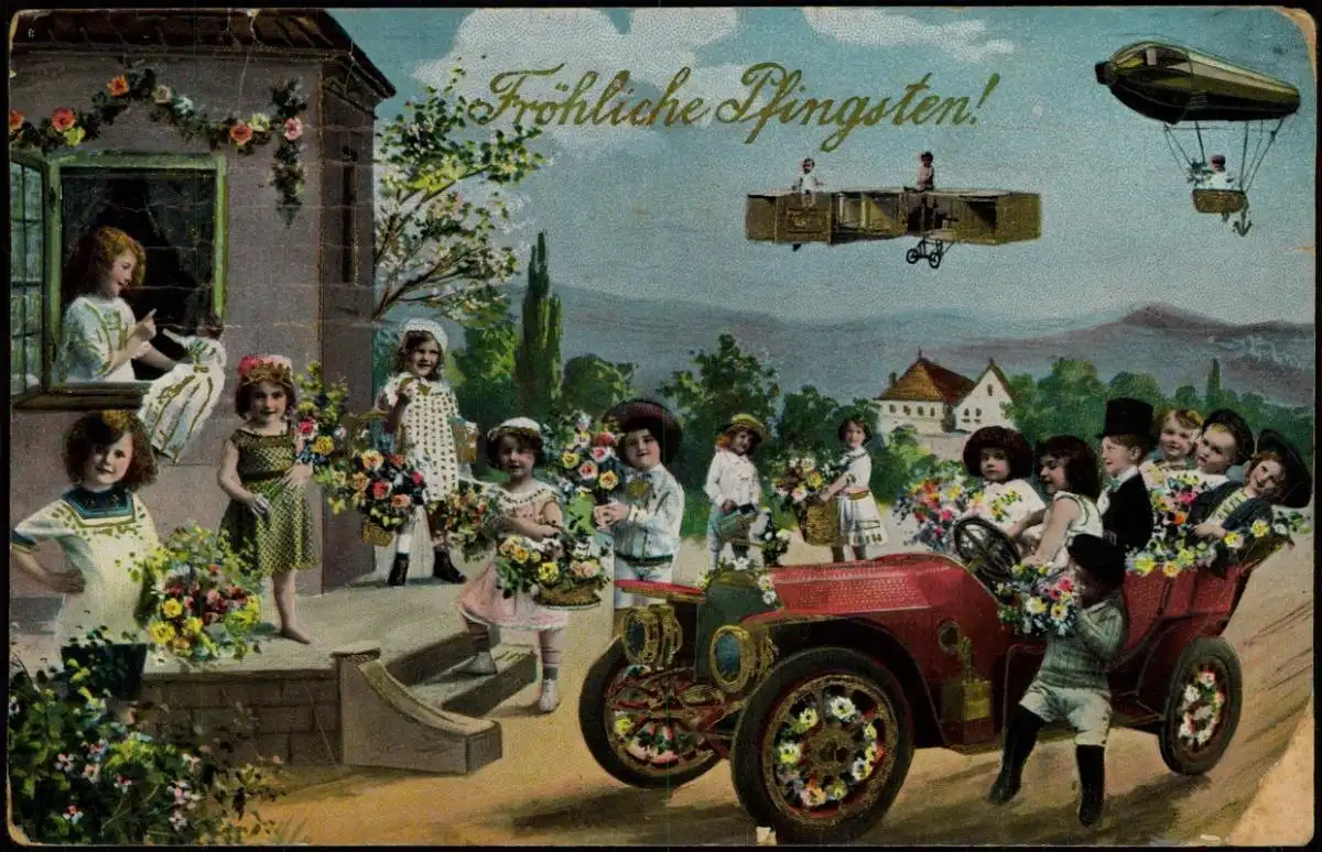 Name: Pfingsten Pentecost Kinder Blumen Zeppelin Flugzeug