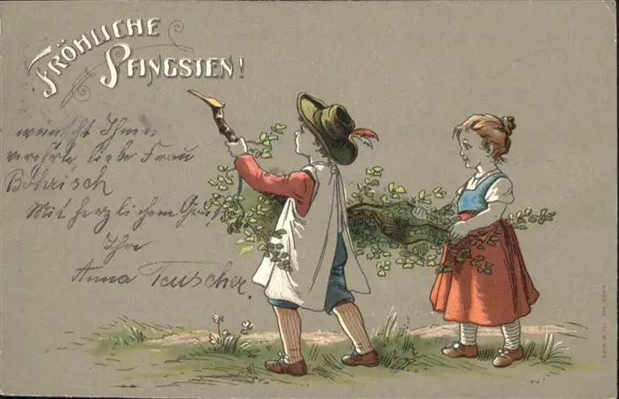 Pfingsten Pentecost Pentecote Kinder Greetings postalisch gelaufen 1905 Alte Ansichtskarte Postkarte