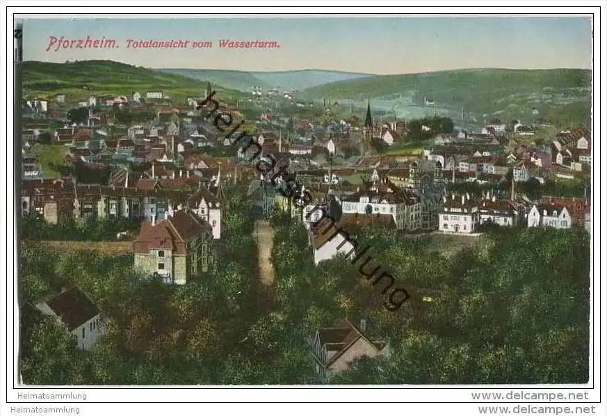Pforzheim - Gesamtansicht vom Wasserturm - Verlag Brunner Karlsruhe (G29381) *