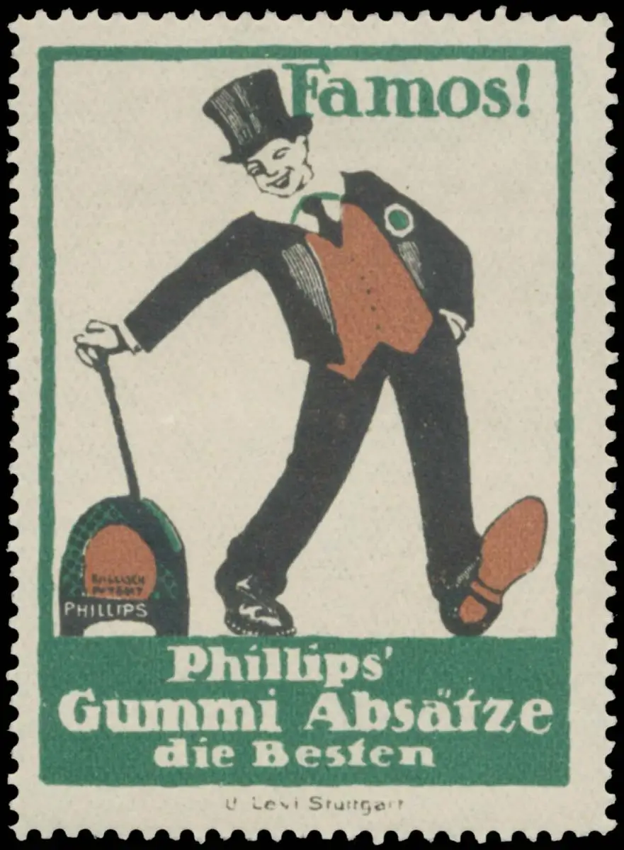 Schuhabsatz, Druck: U. Levi, Stuttgart, Größe/Zustand: 6x4 , guter Zustand, Original alte Reklamemarke die seinerzeit für die Werbung benutzt wurde