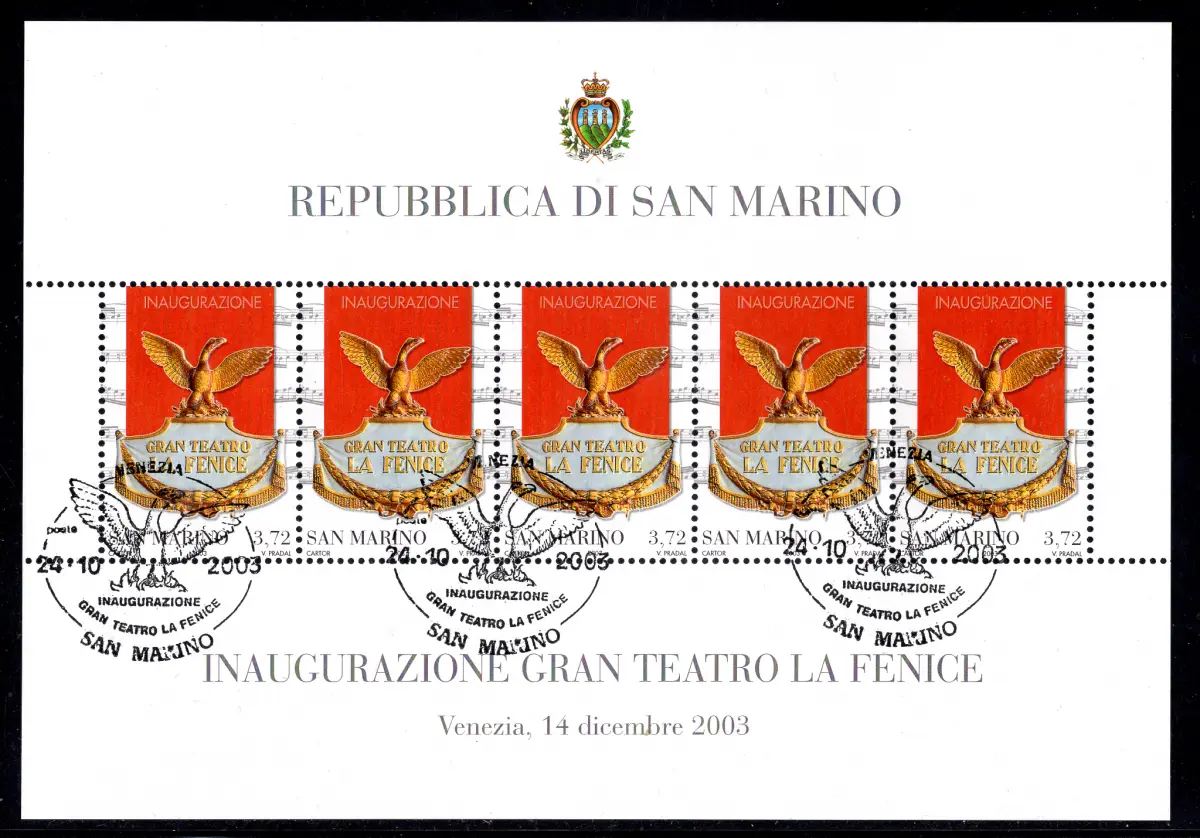 Gebraucht - Teatro Phönice - Zettel Nr. 73 gebraucht am Erstausgabetag - Ann. besondere Figur der Theatereröffnung - Ungewöhnlich - Kat. euro 320 Cod. 994/17