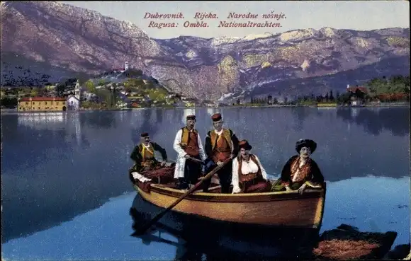 Photochromie Ak Dubrovnik Kroatien, Männer in Nationaltrachten in einem Boot