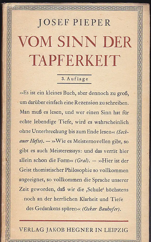 Pieper, Josef: Vom Sinn der Tapferkeit.