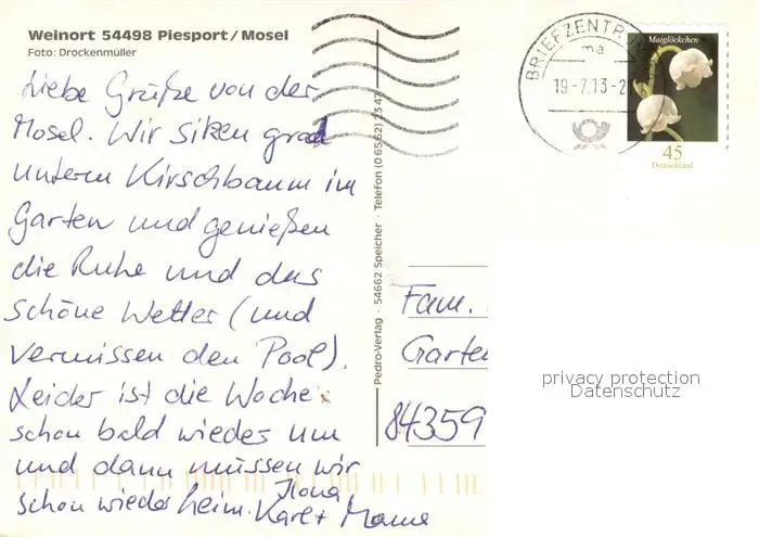 Piesport Panorama Weinort an der Mosel Weinberge Kapelle Piesport postalisch gelaufen 2013 Erhaltung siehe scans [FriedD77] Frierer