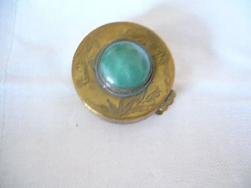 Pillendose aus Messing mit grünem Stein - wohl Jade (312) Preis reduziert