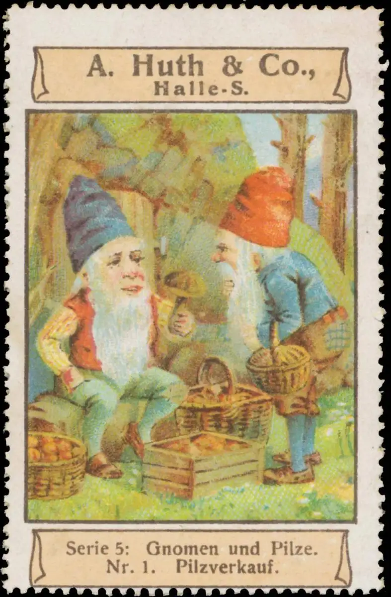 Serie 5: Gnomen und Pilze Nr. 1, Zwerg , Größe/Zustand: 7x5 , guter Zustand, Original alte Reklamemarke die seinerzeit für die Werbung benutzt wurde