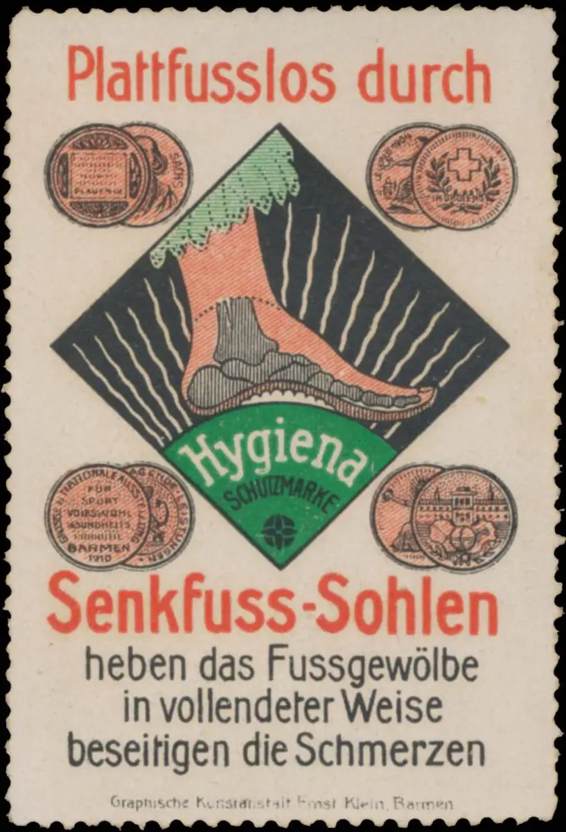 Plattfusslos durch Hygiena Senkfuss-Sohlen