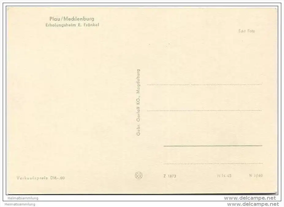 Plau - Erholungsheim E. Fränkel - Foto-AK Grossformat - Verlag Gebr. Garloff KG Magdeburg 1960 (E8962)