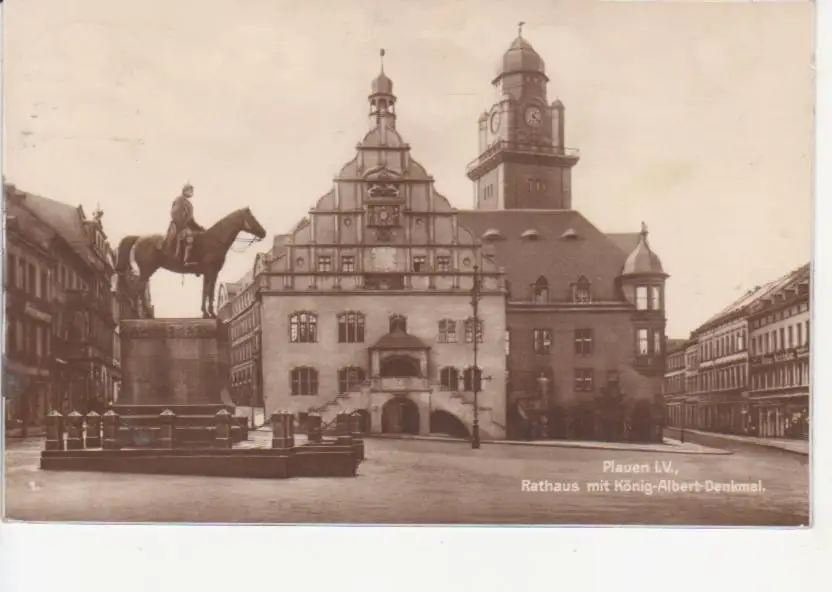 Plauen Rathaus mit König Albert-Denkmal gl1928 79.985