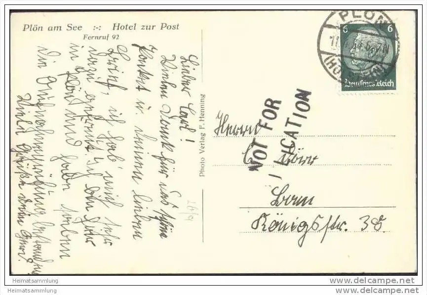 Plön am See - Hotel zur Post - Foto-AK - Verlag F. Henning (E15738) gel. 1934