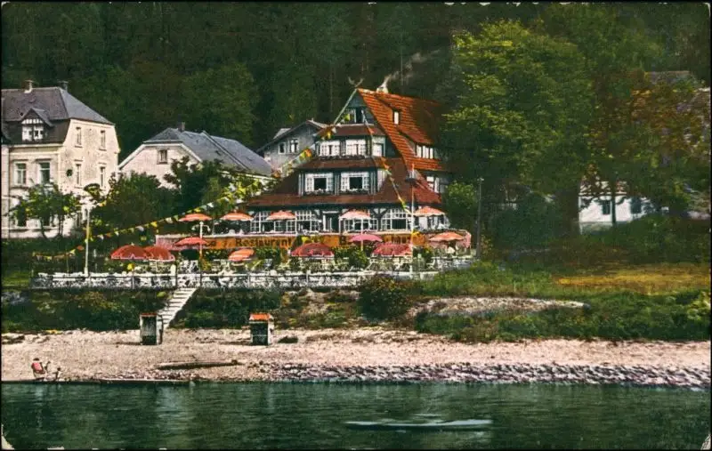Pötzscha-Wehlen Gaststätte Hotel an der Elbe Gasthof Bauernhäus`l 1910