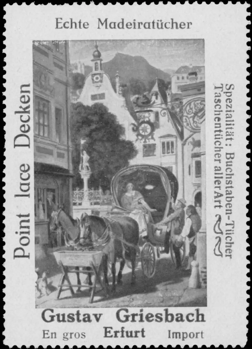 Buchstaben-Tücher, Taschntücher, Pferdegespann, Größe/Zustand: 7x5 , guter Zustand, Original alte Reklamemarke die seinerzeit für die Werbung benutzt wurde