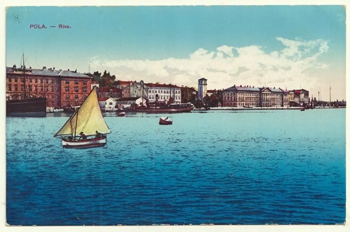 Bemerkungen: Gelaufen mit Stempel. Zweizeiler rot neben K. u. K.MFPA/19 .IV. 16/c Pola.