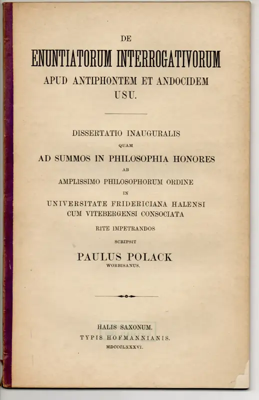 Polack, Paul: De enuntiatorum interrogativorum apud Antiphontem at Andocidem usu. Dissertation.