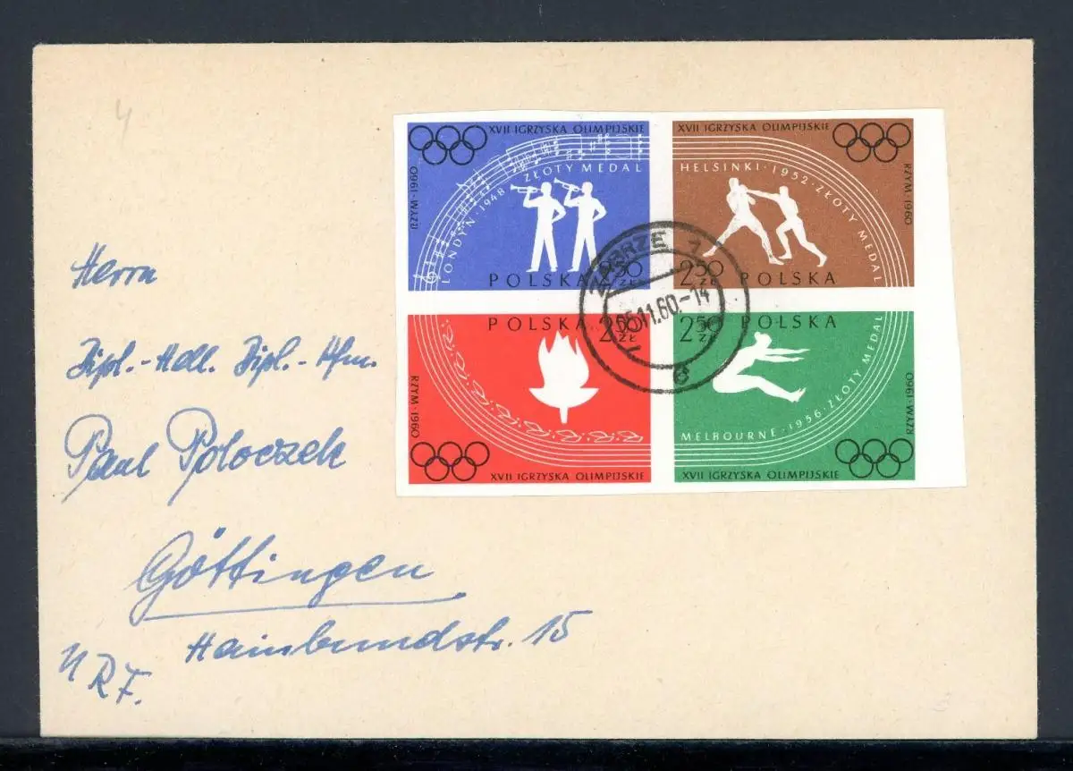 Polen 4er Block mit 1170-1173 B gestempelt auf Brief #2A055