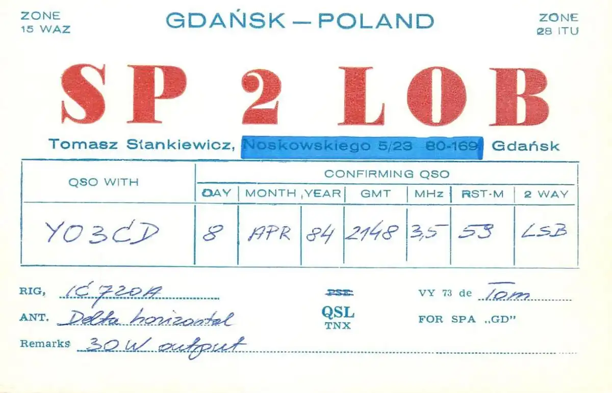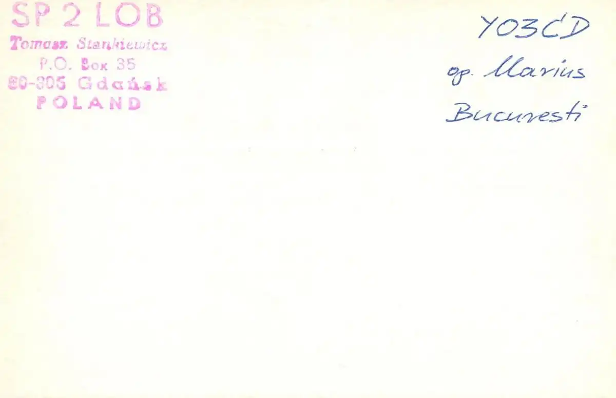 Polish Amateur Radio Station QSL Card Poland Y03CD SP2LOB