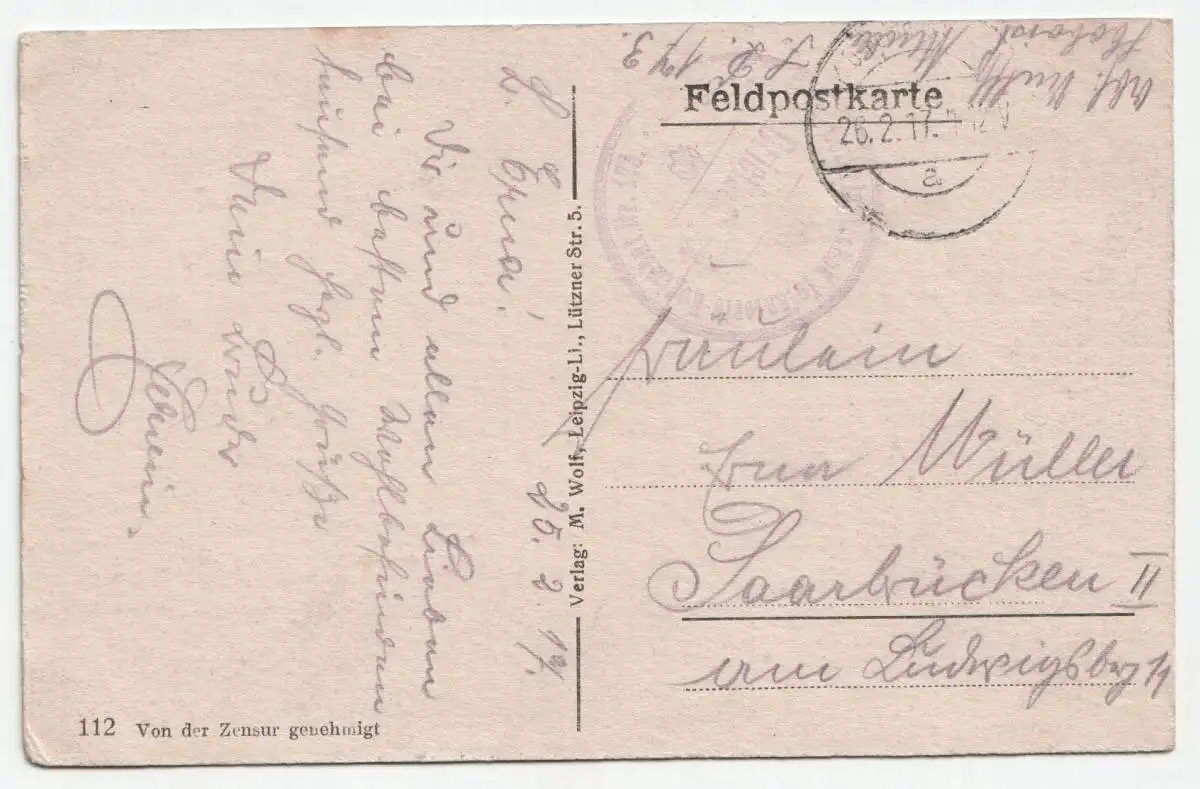 Pontfaverger, Leipzig, Feldpostkarte, jahr 1917