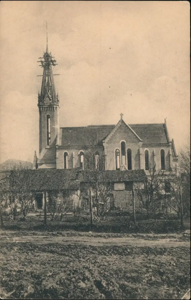 Pontfaverger-Moronvilliers Kirche Ansicht 1. Weltkrieg, World War I. 1916