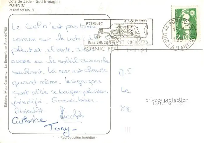 Pornic Cote de Jade Port Pornic postalisch gelaufen 1991 Erhaltung siehe scans [KathaD81] Kathoren