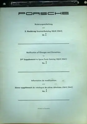 Porsche 356 B + C Ersatzteilliste 1960er Jahre