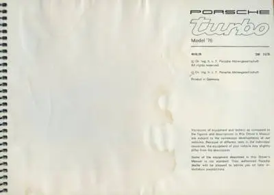 Porsche 911 Turbo Bedienungsanleitung 11.1975 e