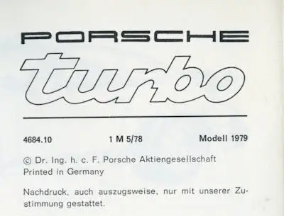 Porsche 911 Turbo Bedienungsanleitung 1979