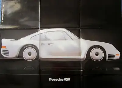 2 Seiten 100 x 76 cm Faltblatt Plakat Porsche 959 Leichte Gebrauchsspuren