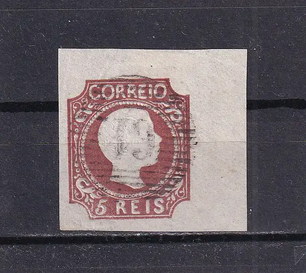 PORTUGAL 1856 5 R. D. PEDRO V/ Mi 9 sehr sauber und zart mit dem Nummerstempel 61/ GUIMARAES entwertet