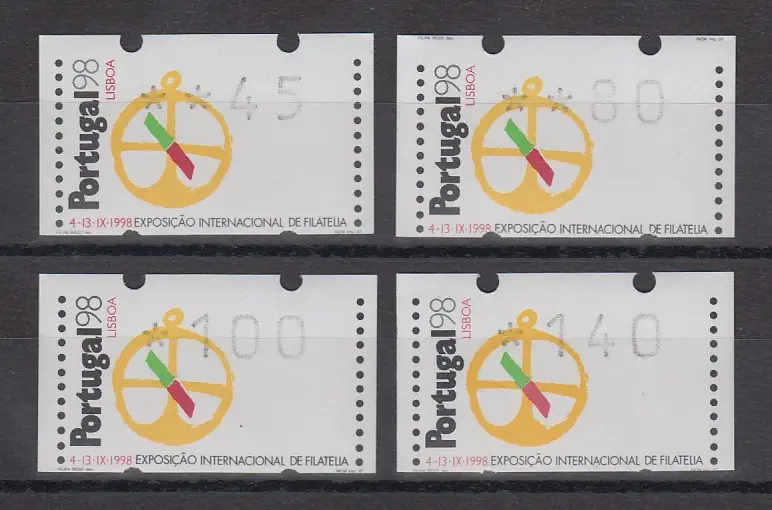 Portugal 1997 ATM PORTUGAL'98 Mi.-Nr. 16 Z1 Satz 45-80-100-140 **