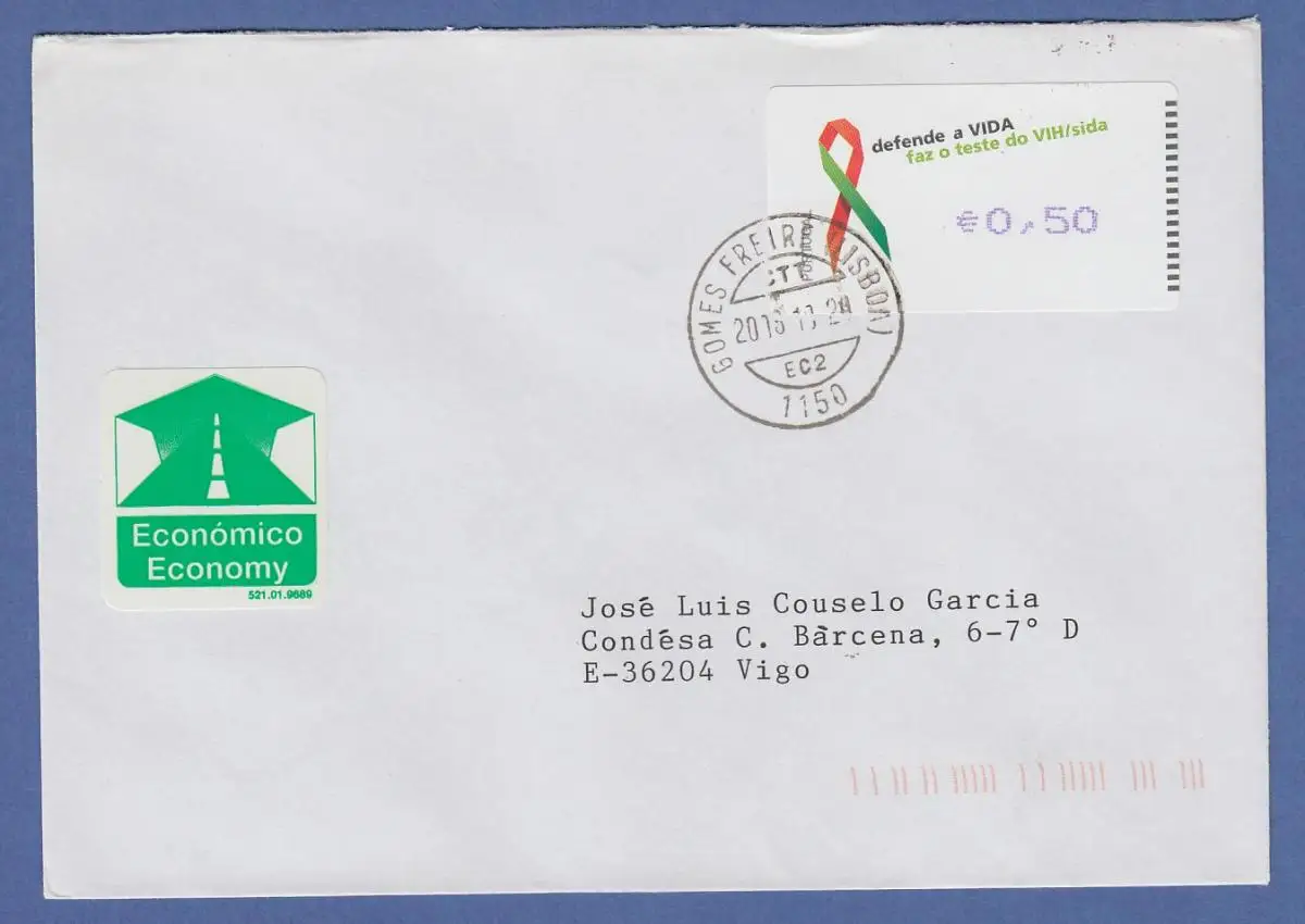 Portugal 2006 ATM AIDS-Bekämpfung Amiel Mi.-Nr. 56.2 Wert 0,50 auf gel. FDC