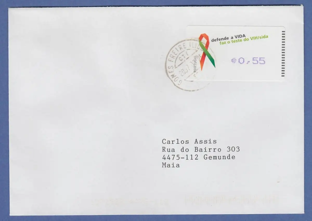 Portugal 2006 ATM AIDS-Bekämpfung Amiel Mi.-Nr. 56.2 Wert 0,55 auf gel. Brief