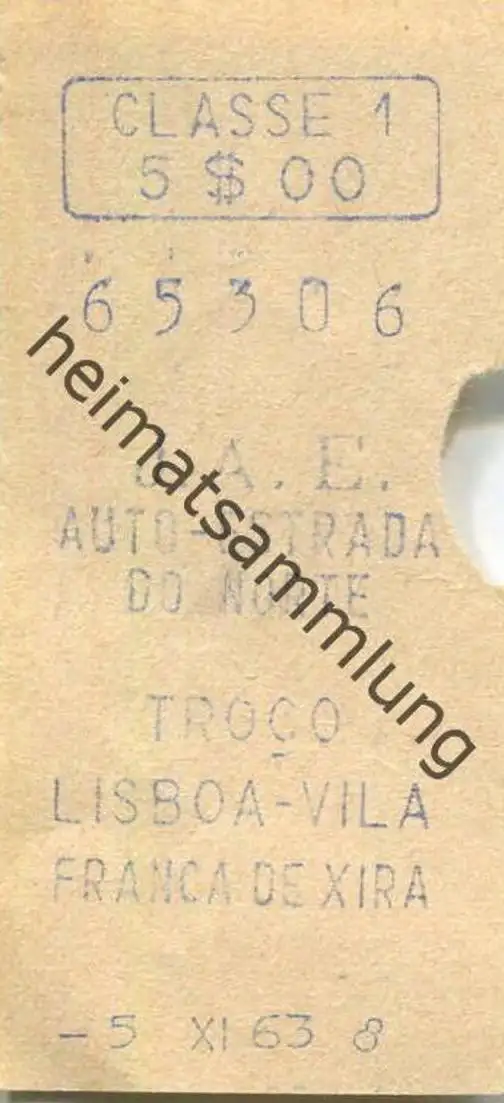 Portugal - J.A.E. Auto-Estrada do Norte - Busfahrschein