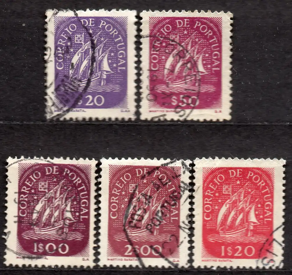 Portugal, Mi-Nr. 649, 652, 653, 655 + 727 gest., Karavelle