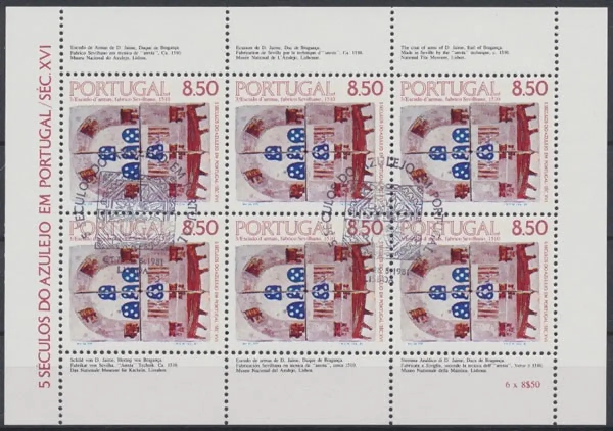 500 Jahre Azulejos in Portugal, Kleinbogen, Ersttagssonderstempel