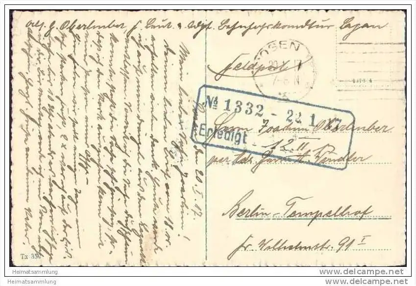 Posen - Königliche Akademie - Feldpost - kleiner Einriss links (E189) gel. 1917