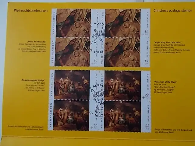 Weihnachtsmarken mit Sonderstempel Bonn und Berlin