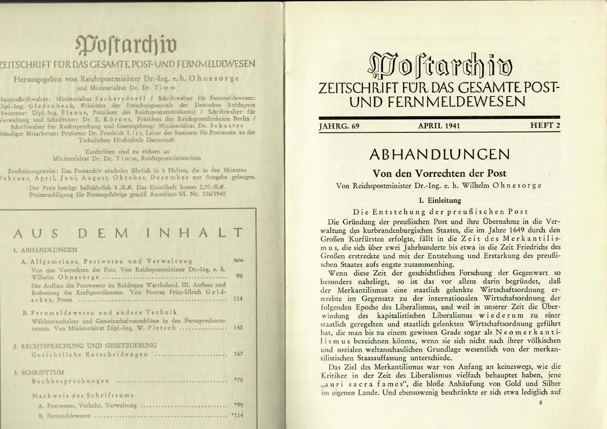 Postarchiv: Band 69, 1941, Heft 2, gebunden, Themen siehe Beschreibung