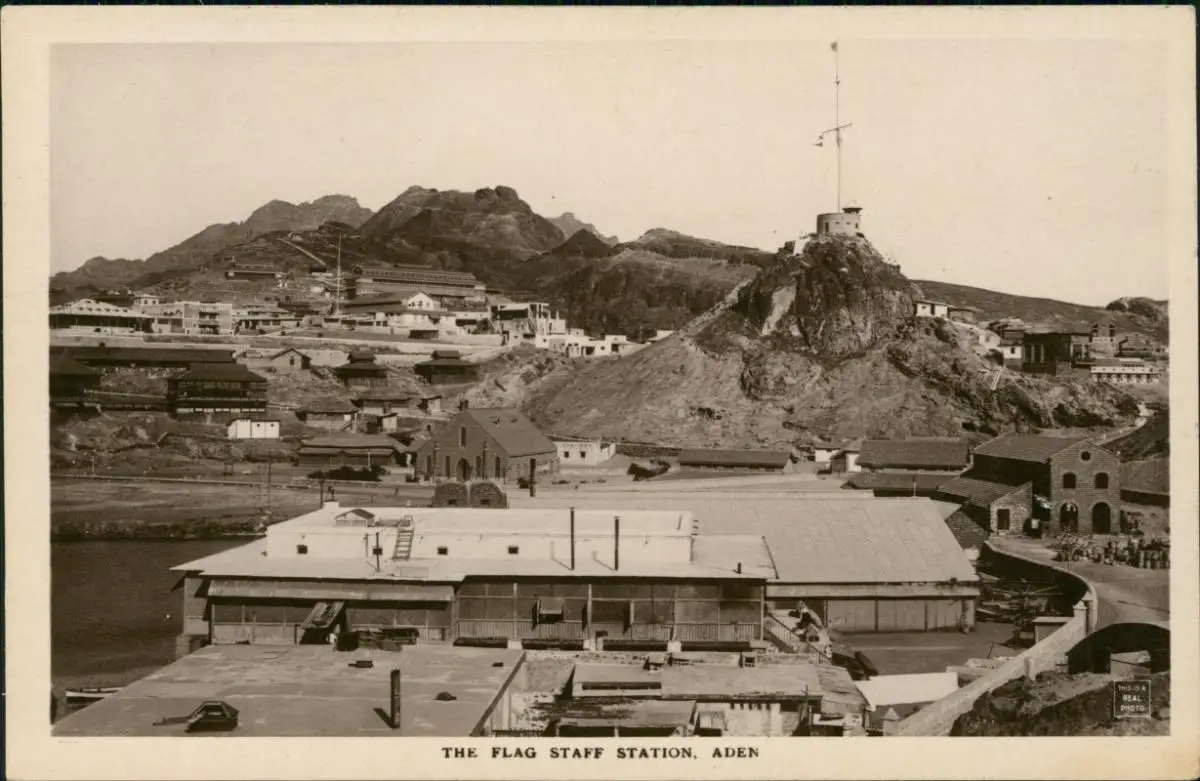 Postcard Aden عدن The Flag Staff Station/Hafen 1926